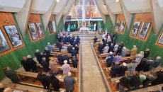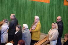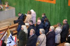 Przypomnieć warto, że początkowo rolę naszej świątyni spełniała kaplica, w której obecnie znajduje się Sala Kominkowa, w której dziś znajomi Ks. Jerzego na krótko się spotkali po mszy św. o godz. 12:30, aby choć przez chwile powspominać Jego dzieło i postać. Na początku jednak, o godz. 12:00 przy grobie Ks. Jerzego na tzw. Nowym Cmentarzu odmówiliśmy Anioł Pański i modlitwę za zmarłych pod kierownictwem Ks. Proboszcza Tomasza Biszko i ks. Dziekana Bogdana Żygadło.