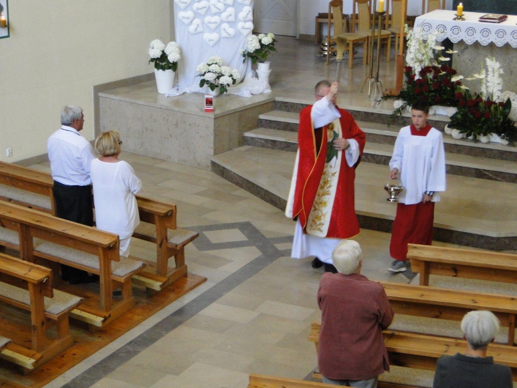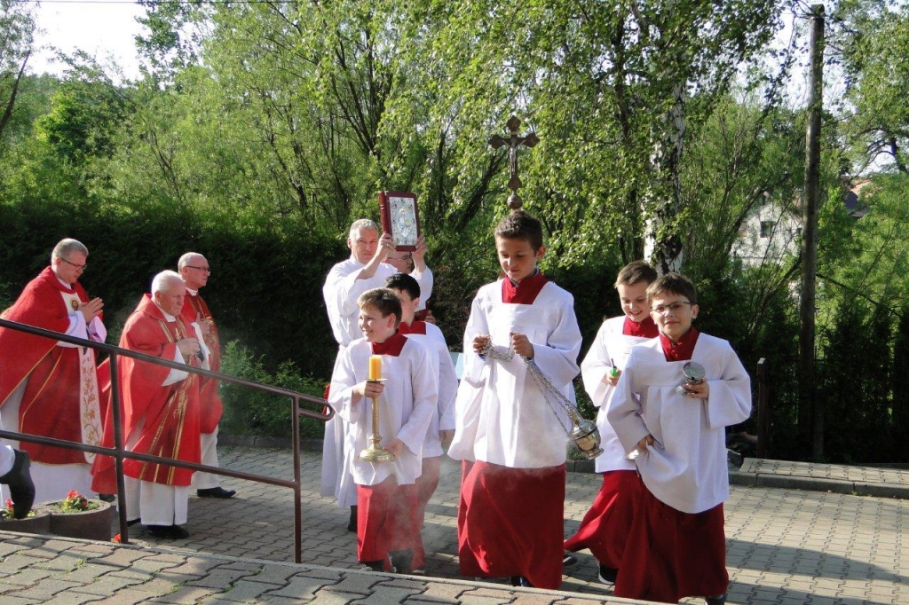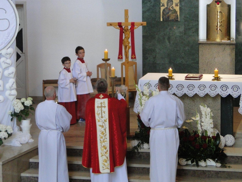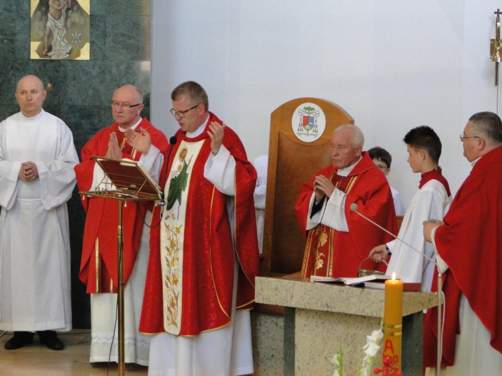 W sobotni wieczór wigilii Zesłania Ducha św. w naszej świątyni parafialnej dziękowaliśmy Bogu za dar tego miejsca i tych ludzi , którzy tę świątynie wznosili i tworzyli Żywy Kościół – Wspólnotę, zwłaszcza za poprzednich proboszczów: śp. ks. Zbigniewa Stefaniaka i śp. ks. Jerzego Gniatczyka oraz panią Mariannę Smirnow. Dziękowaliśmy Bogu za to, że znaleźli się ludzie którzy ofiarowali miejsce, swoje siły, konkretną ofiarę materialną, swój czas, swoją pracę i umysł, swoje zdolności i serce dla tego, aby w tym miejscu, na Osiedlu Czarne powstał kościół. Ta świątynia to owoc konkretnego wysiłku, który podjęliśmy jako parafianie od 12. 08. 1990 roku, kiedy to ks. kardynał Henryk Gulbinowicz dokonał poświecenia i wmurowania kamienia węgielnego pod nasz kościół. Wspominaliśmy ten moment, kiedy w najbardziej uroczystym obrzędzie, 4 czerwca 2006 roku, dedykowano Bogu tę świątynię. O tym przypominały nam również świece zapalone podczas Eucharystii przy tzw. zacheuszkach, czyli znakach dedykacji, które umieszczane są na ścianach świątyni w miejscu ich namaszczenia, dokonanego przez biskupa, w trakcie liturgii poświęcenia kościoła.