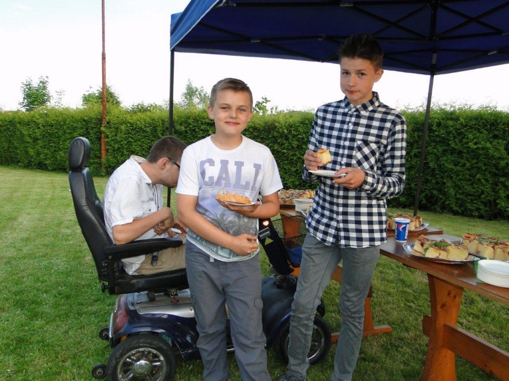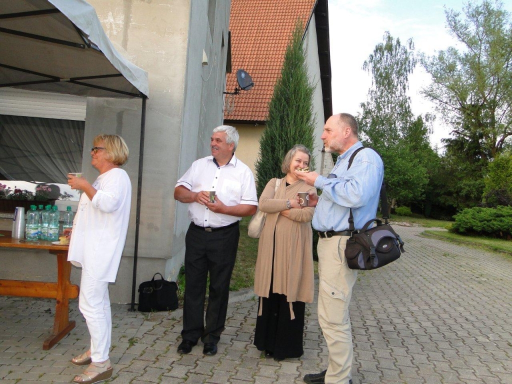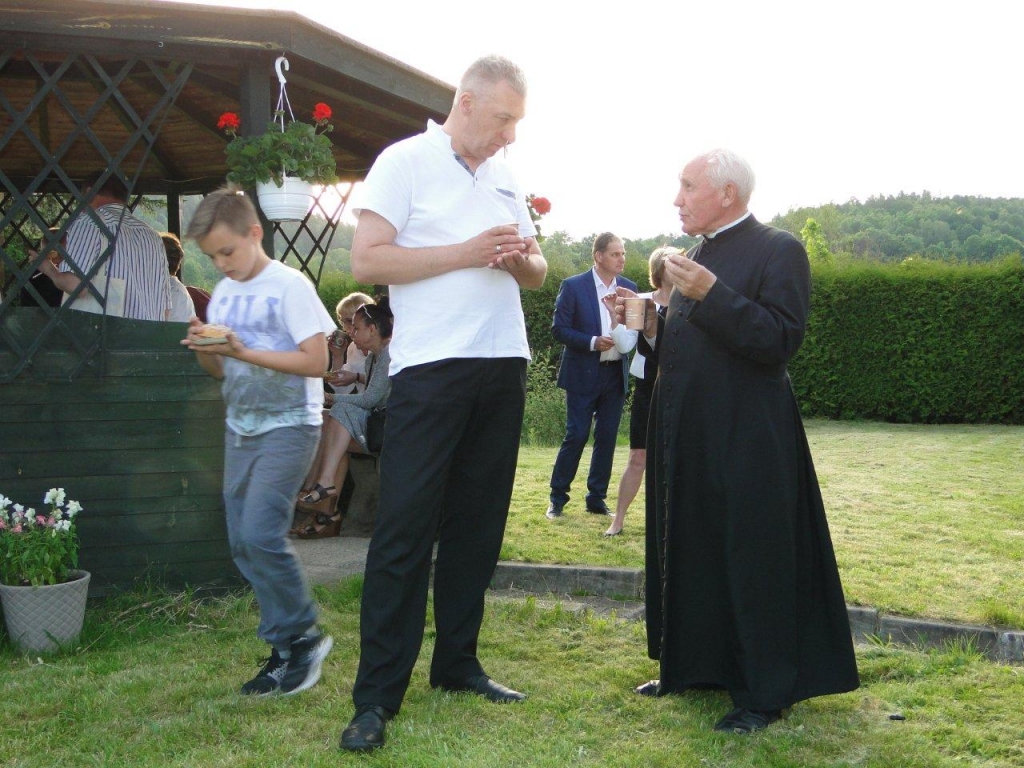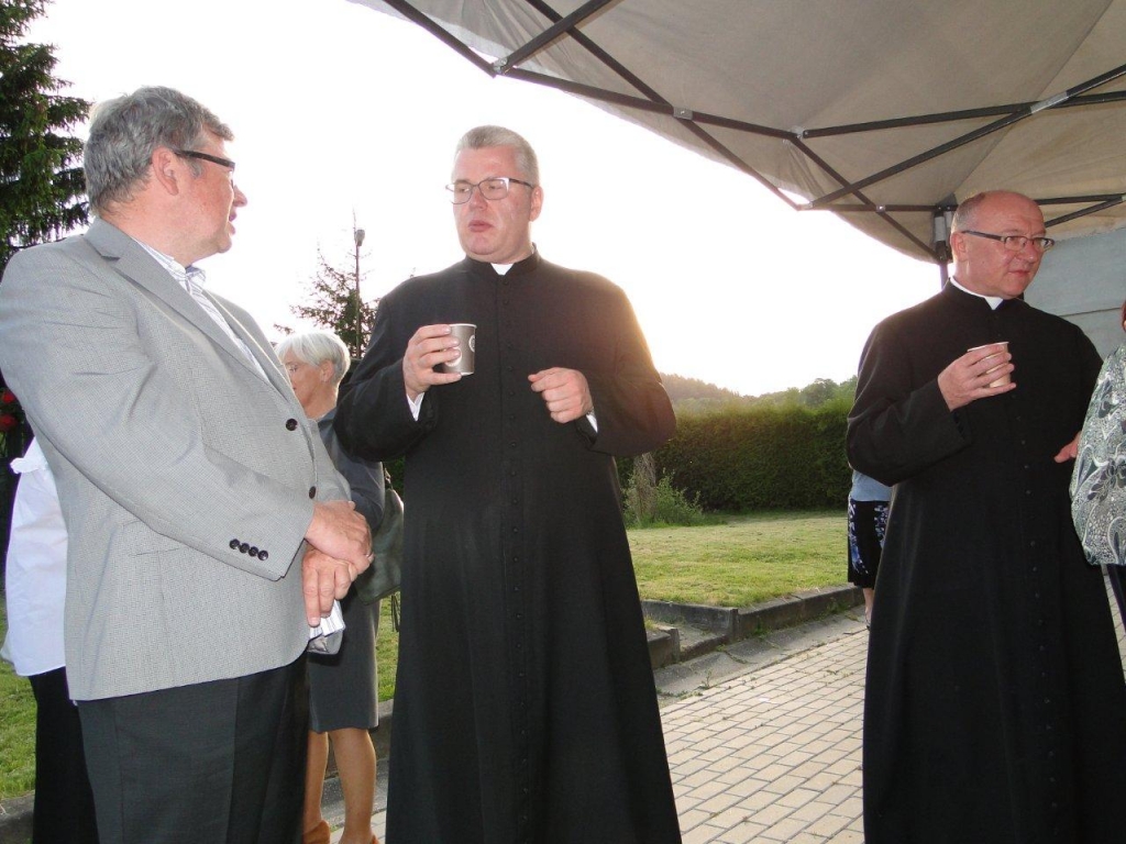 Po Mszy św. wszyscy uczestnicy liturgii zostali zaproszeni na poczęstunek w ogrodach parafialnych. Był przepyszny chleb ze smalcem i ogórkiem małosolnym, ciasto, kawa i herbata. Ks. Proboszcz poczęstował również każdego lampką wybornego szampana. Ale przede wszystkim był to czas kiedy mogliśmy być po prostu razem, zatrzymać się w biegu