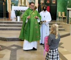 W niedzielę 6 września w czasie mszy św. o godz. 11:00 Ks. Proboszcz pobłogosławił dzieci rozpoczynające nowy rok szkolny i ich tornistry. Tylko 1 dziecko, Oliwia, przyniosło tornister. Miejmy nadzieję, że w przyszłym roku zgłosi się więcej dzieci. Apelujemy do rodziców, aby nie zaniedbywali troski o przeżycie roku nauki szkolnej z Bogiem.