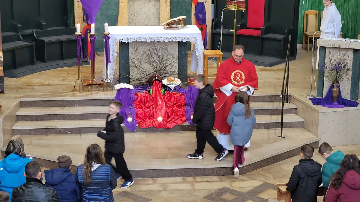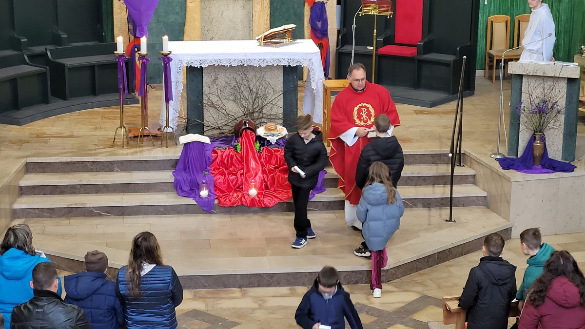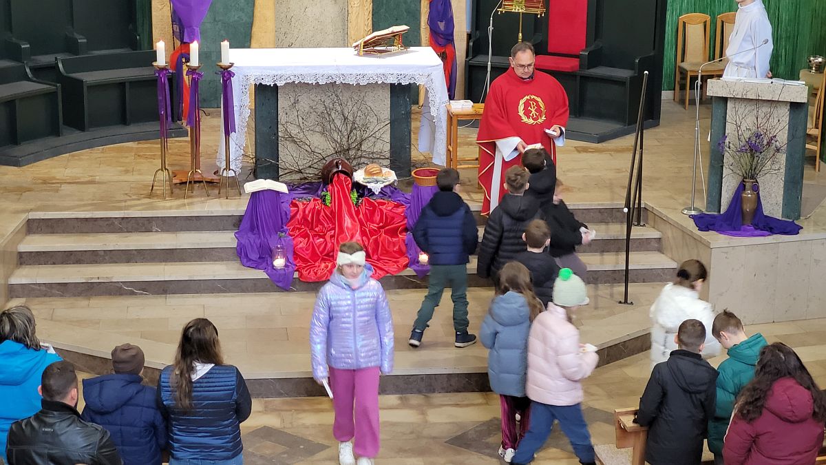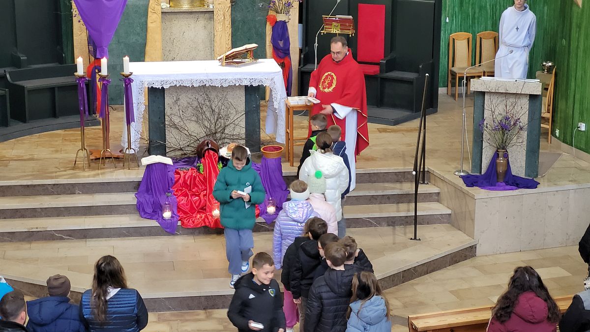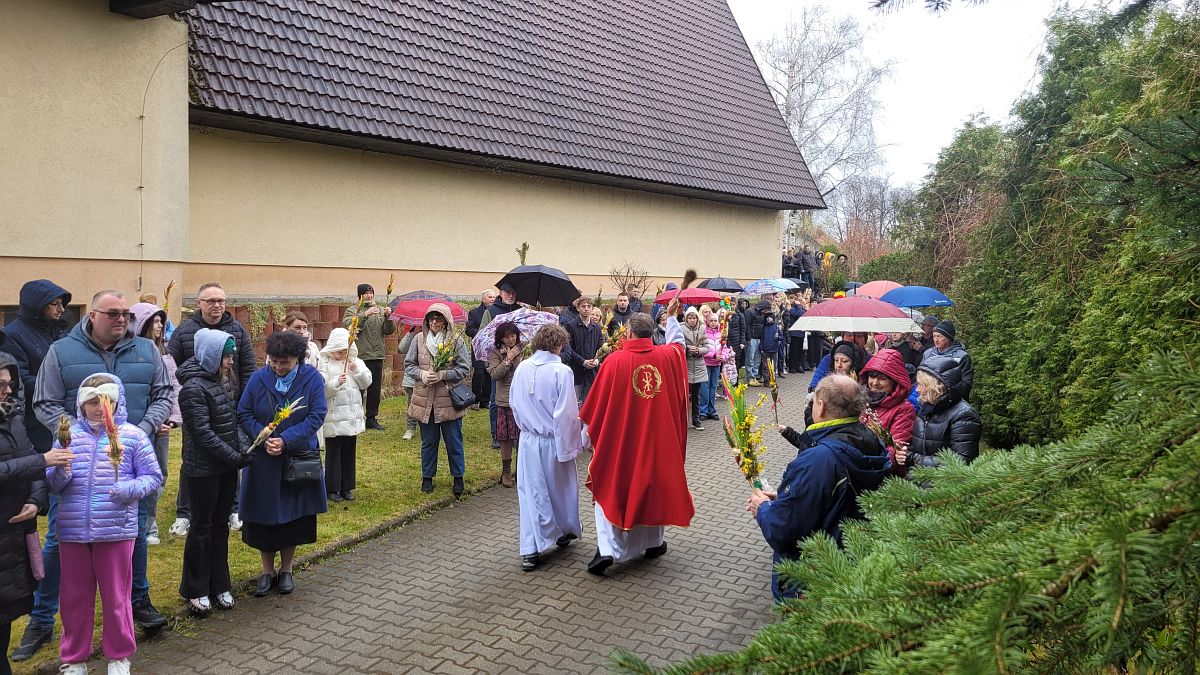 Niedziela 29 marca, jest w tym roku Niedzielą Męki Pańskiej, czyli Niedzielą Palmową. Wspominamy uroczysty wjazd Chrystusa Pana do Jerozolimy. Podczas każdej mszy świętej kapłan błogosławił palmy wielkanocne. Msza św. o godz. 11:00 była poprzedzona uroczystą procesją do kościoła, która rozpoczęła się przy grocie Matki Bożej. W ten sposób rozpoczęliśmy przeżywanie Wielkiego Tygodnia, w którym będziemy wspominać najważniejsze wydarzenia zbawcze: mękę, śmierć i zmartwychwstanie Chrystusa. Na mszy św. o godz. 11.00, odbyło się także poświęcenie książeczek dla dzieci I komunijnych.