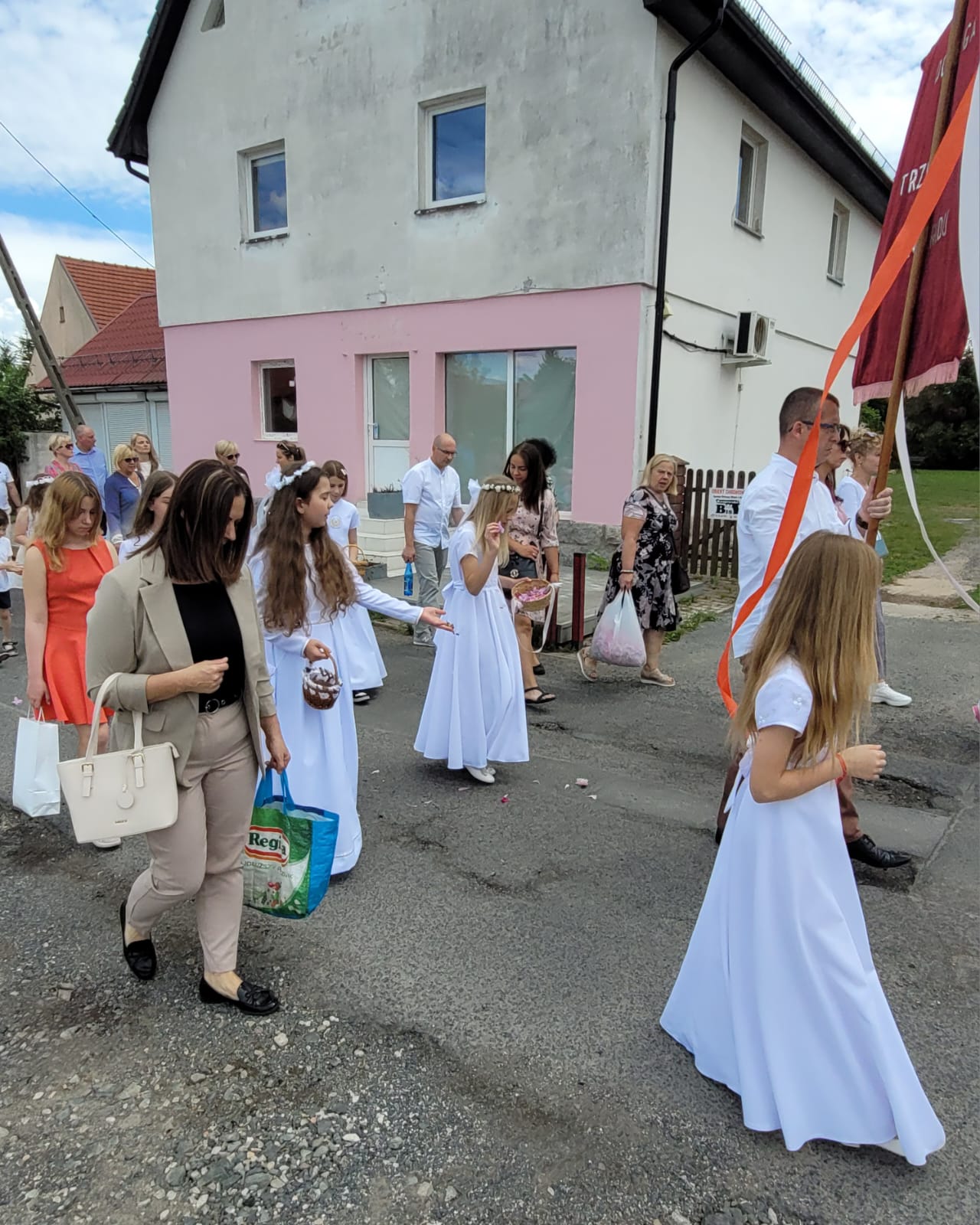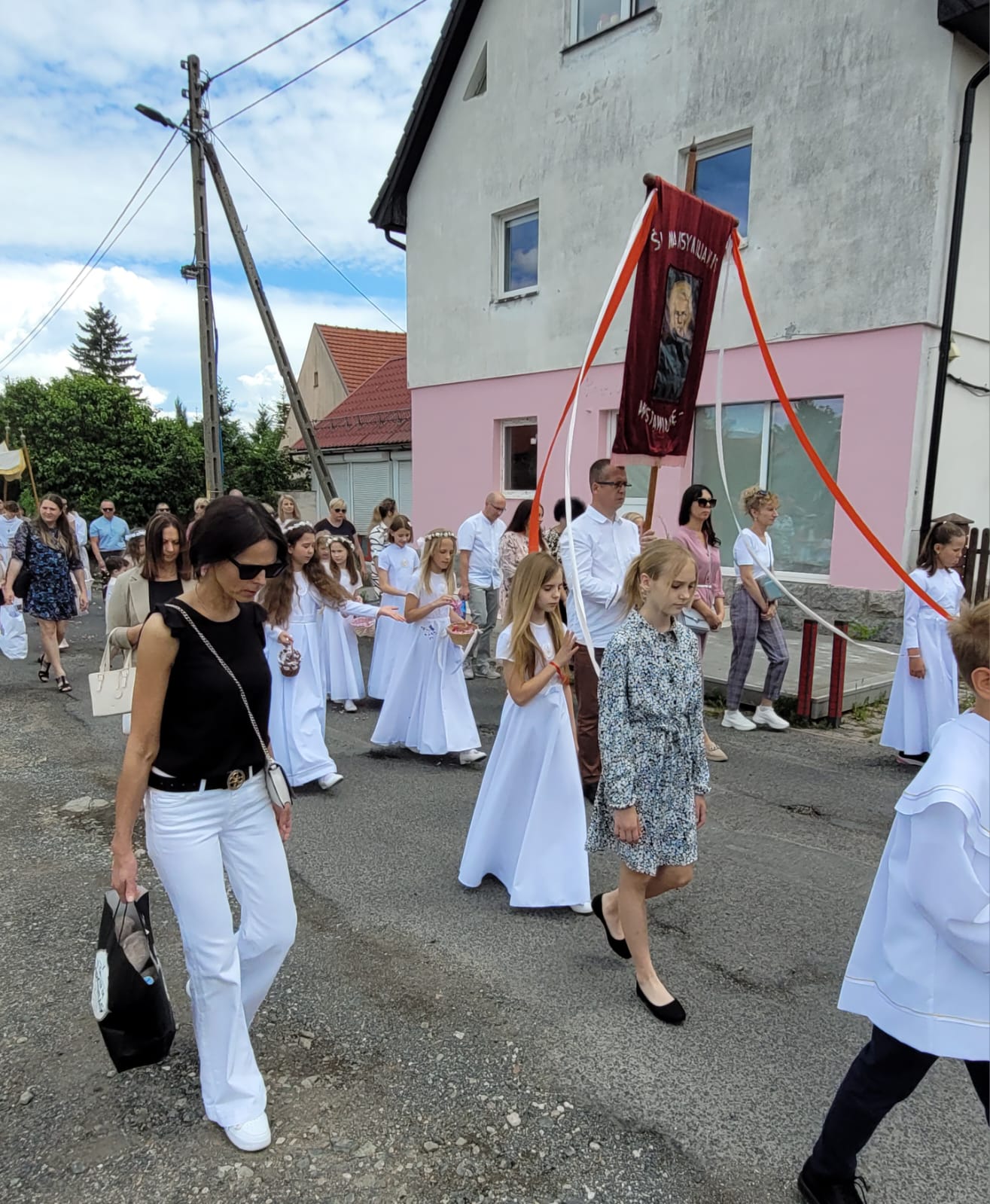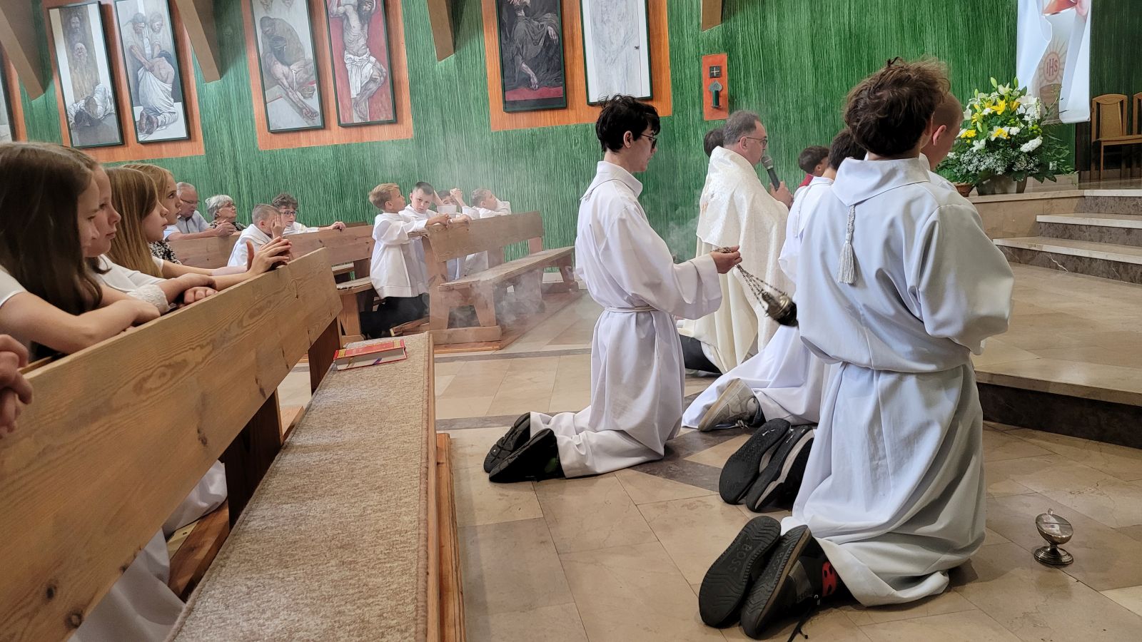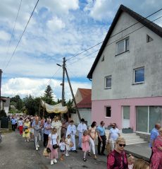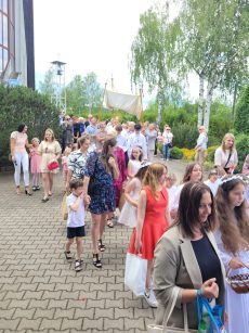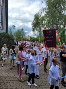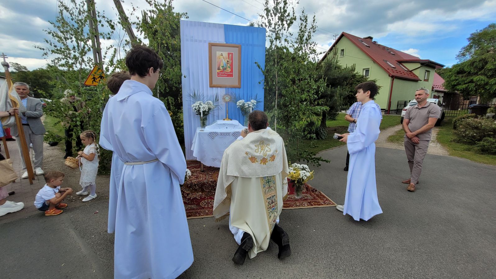 W czwartek 30 maja obchodziliśmy uroczystość Najświętszego Ciała i Krwi Chrystusa. Po mszy świętej o godz. 11.00 wyruszyliśmy z procesją do czterech ołtarzy. Przeszliśmy ulicami: Czarnoleską, Nową, Jaśminową, i znów Czarnoleską, powracając do naszej świątyni. Liczny udział w procesji wzięli mieszkańcy osiedla Czarne, dzieci pierwszokomunijne i obchodzące rocznicę Pierwszej Komunii Świętej, idąc w strojach komunijnych. Niesione były też feretrony i baldachimu zaś dziewczynki tradycyjnie sypały kwiaty na drodze proceji. Dziękujemy wszystkim, dzięki których pracy i zaangażowaniu, ten dzień był dla nas niezwykły, pełen chwały i błogosławieństwa Bożego.