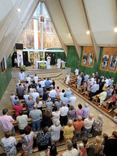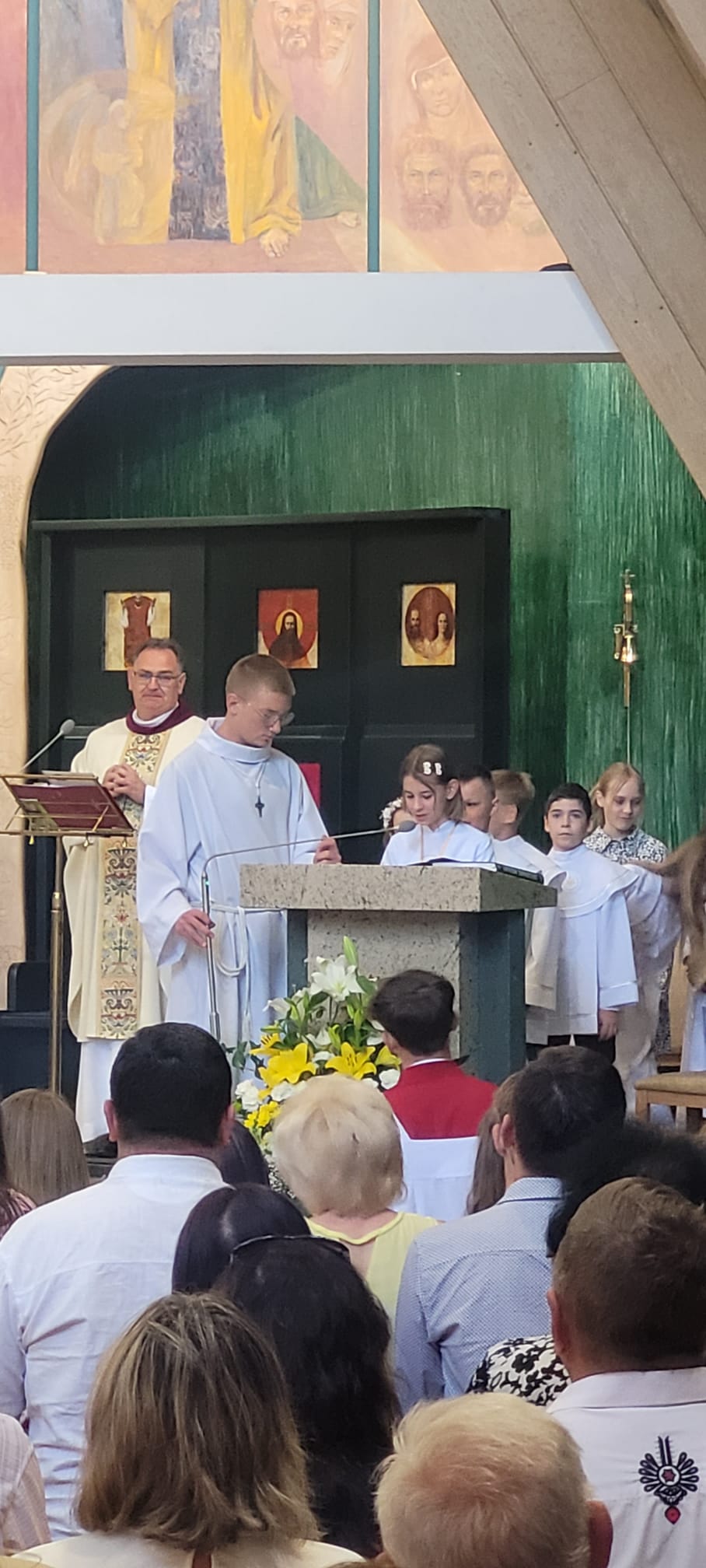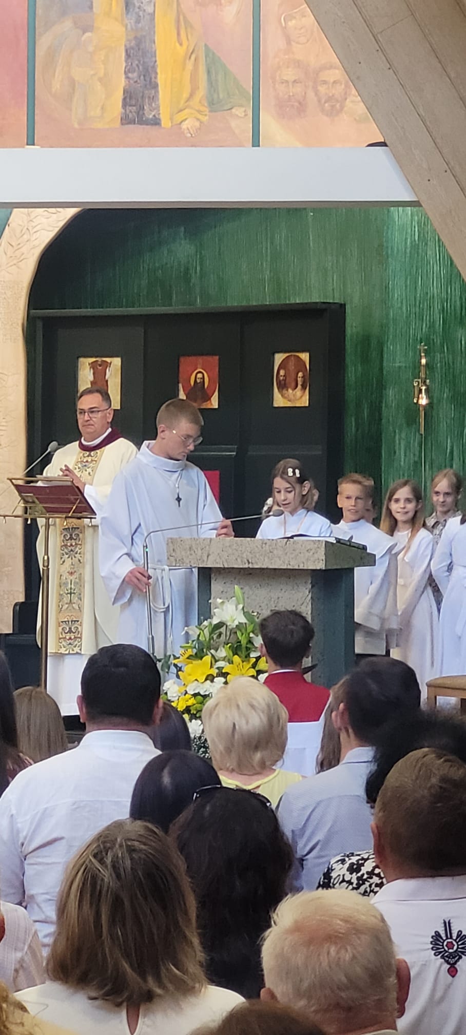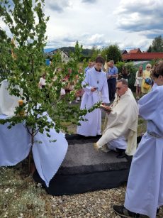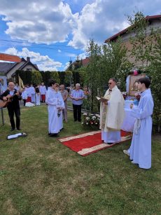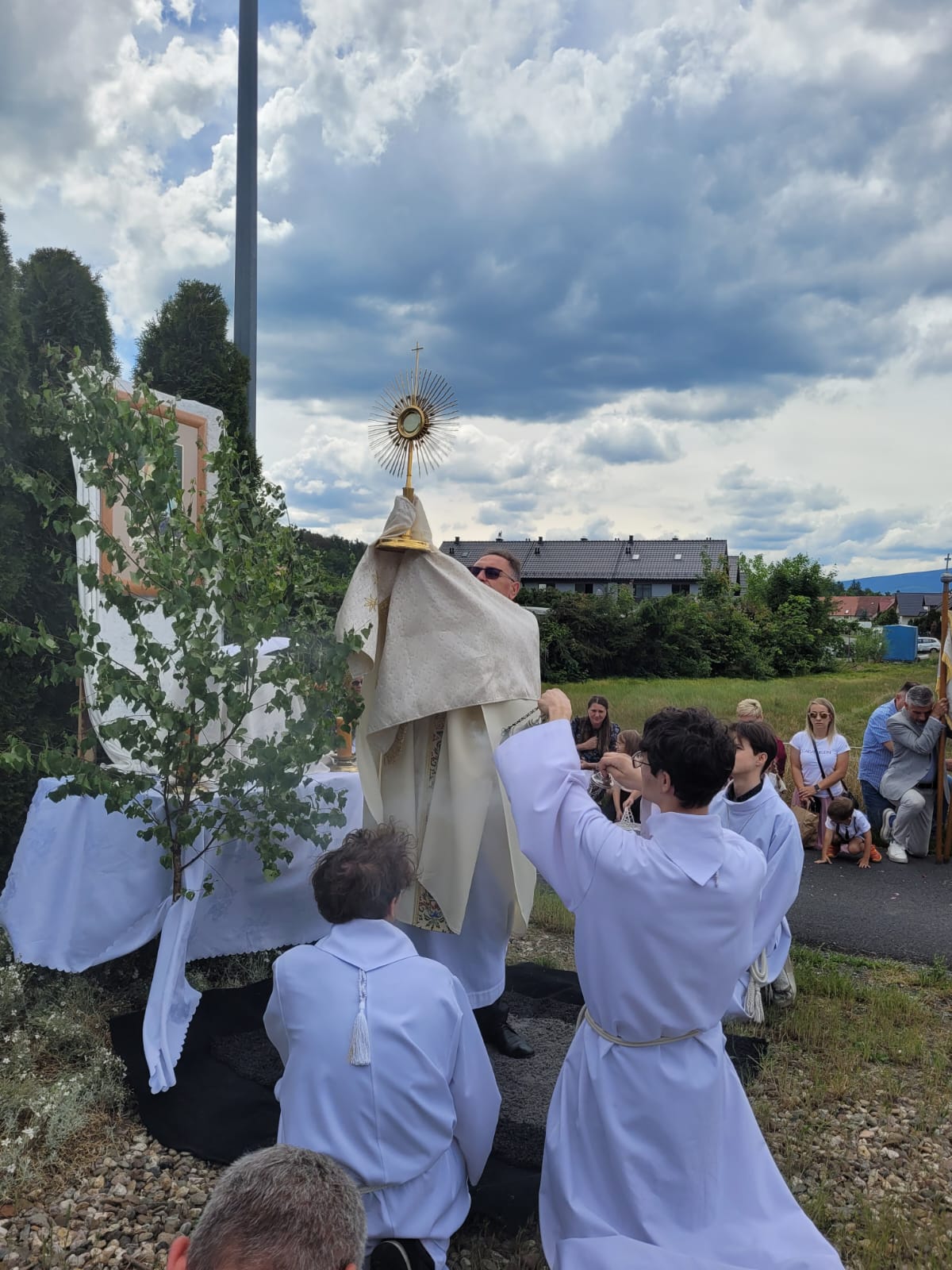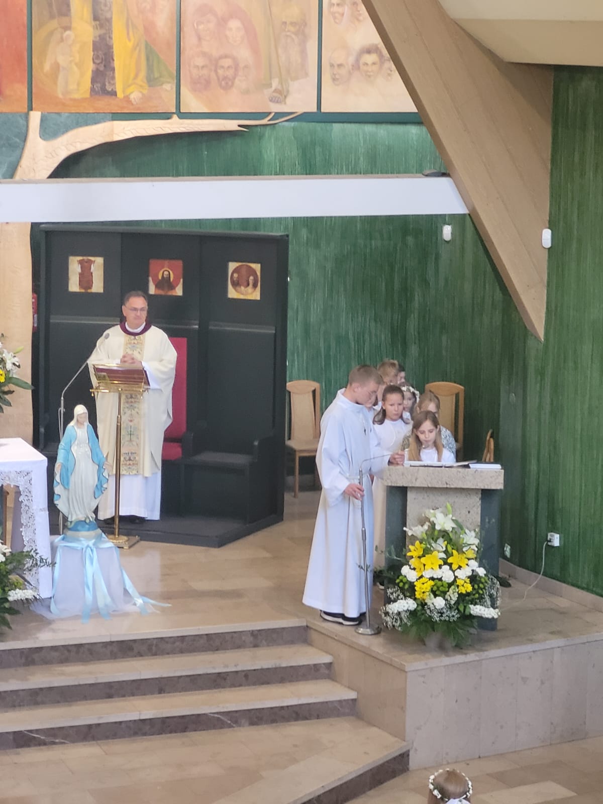 W czwartek 30 maja obchodziliśmy uroczystość Najświętszego Ciała i Krwi Chrystusa. Po mszy świętej o godz. 11.00 wyruszyliśmy z procesją do czterech ołtarzy. Przeszliśmy ulicami: Czarnoleską, Nową, Jaśminową, i znów Czarnoleską, powracając do naszej świątyni. Liczny udział w procesji wzięli mieszkańcy osiedla Czarne, dzieci pierwszokomunijne i obchodzące rocznicę Pierwszej Komunii Świętej, idąc w strojach komunijnych. Niesione były też feretrony i baldachimu zaś dziewczynki tradycyjnie sypały kwiaty na drodze proceji. Dziękujemy wszystkim, dzięki których pracy i zaangażowaniu, ten dzień był dla nas niezwykły, pełen chwały i błogosławieństwa Bożego.