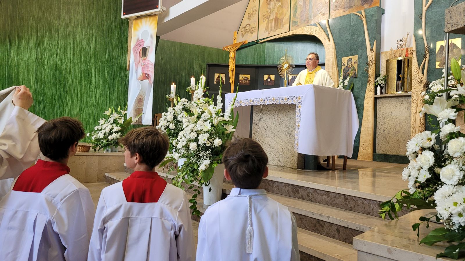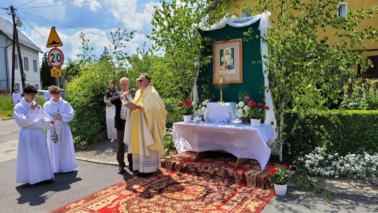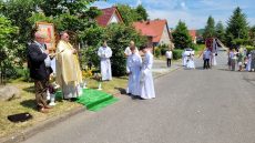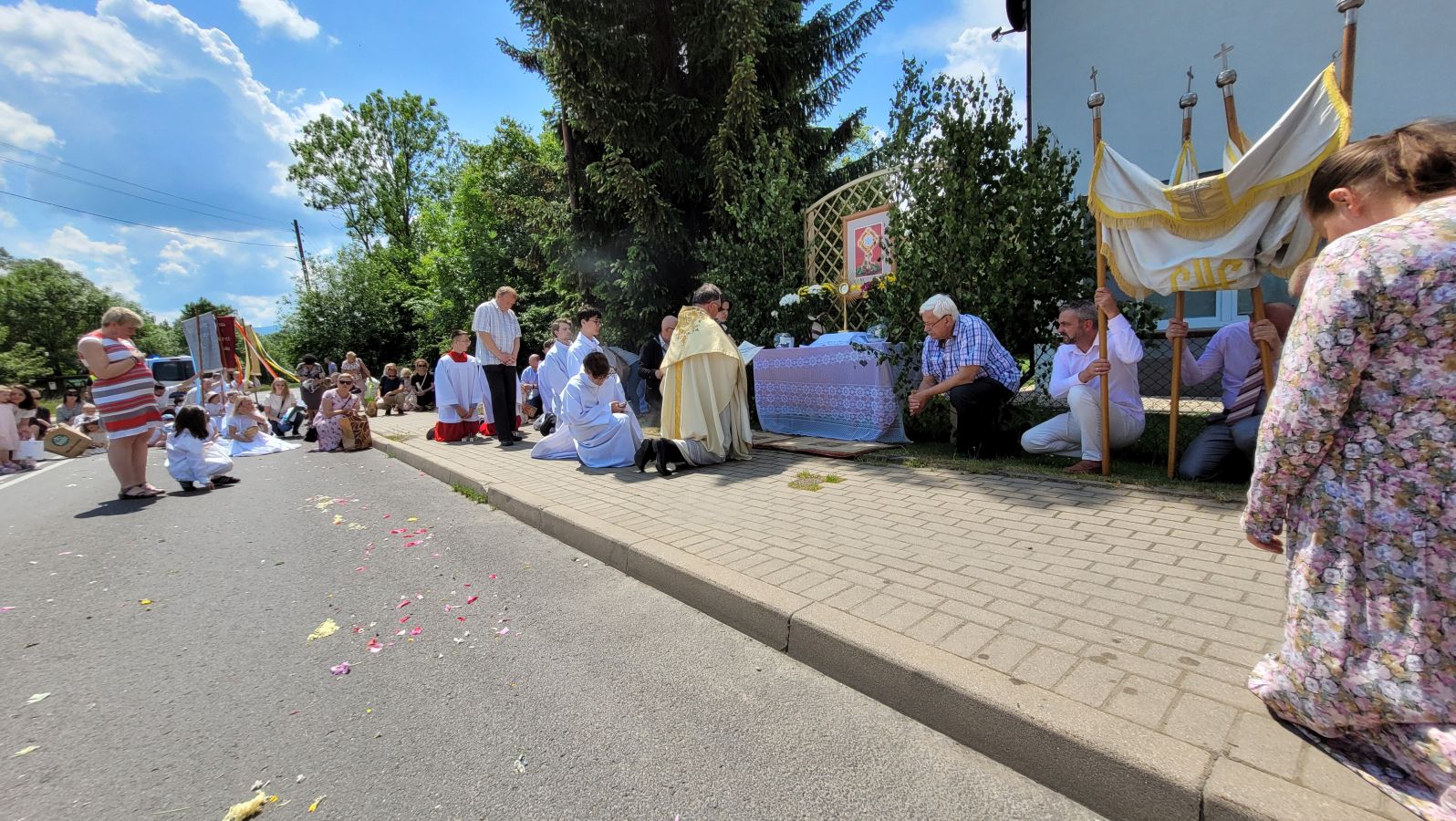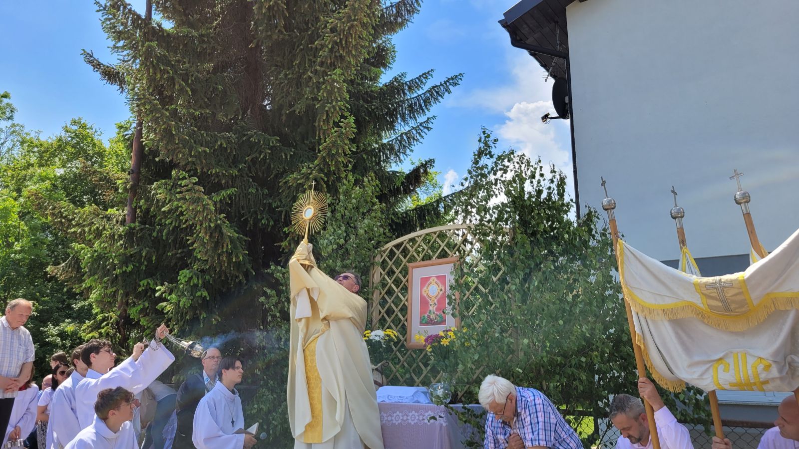 W czwartek 8-06, Kościół obchodził uroczystość Najświętszego Ciała i Krwi Chrystusa. Po mszy świętej o godz. 11.00 wyruszyliśmy z procesją do czterech ołtarzy. Przeszliśmy ulicami: Strumykową, Orzeszkowej, Podleśną, Orzeszkowej i Strumykową, po czym wróciliśmy do naszej świątyni. Udział w procesji wzięły między innymi dzieci pierwszokomunijne i obchodzące rocznicę Pierwszej Komunii Świętej, idąc w strojach komunijnych. Niesione były też tradycyjnie feretrony, baldachim, zaś dziewczynki przy asyście rodziców sypały kwiaty.