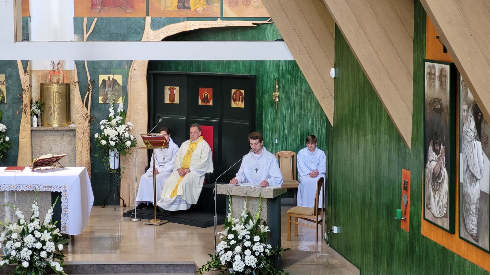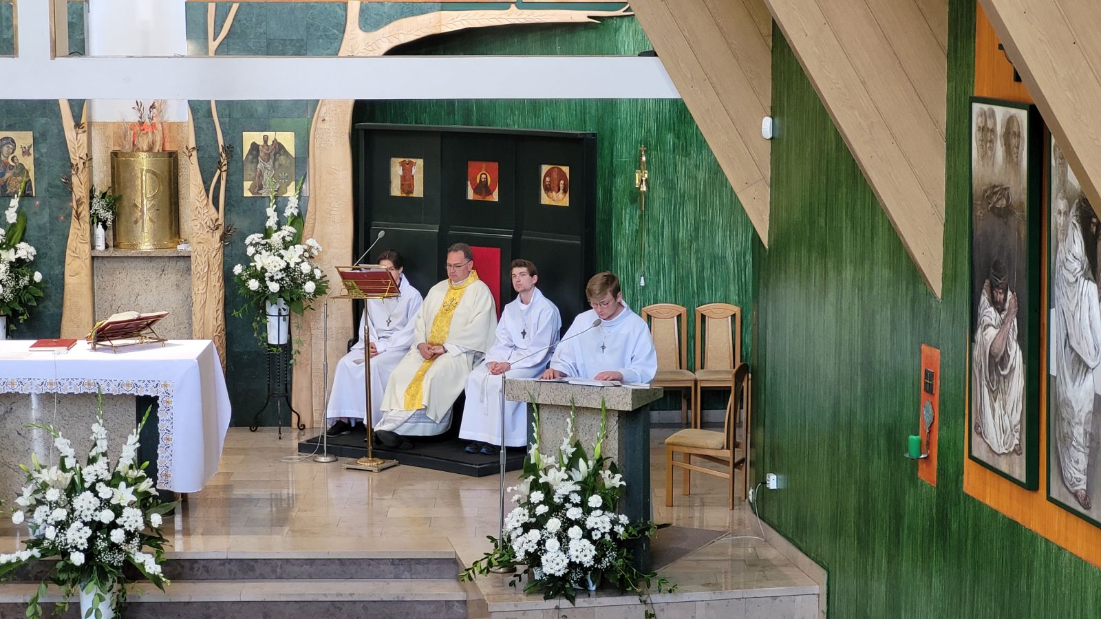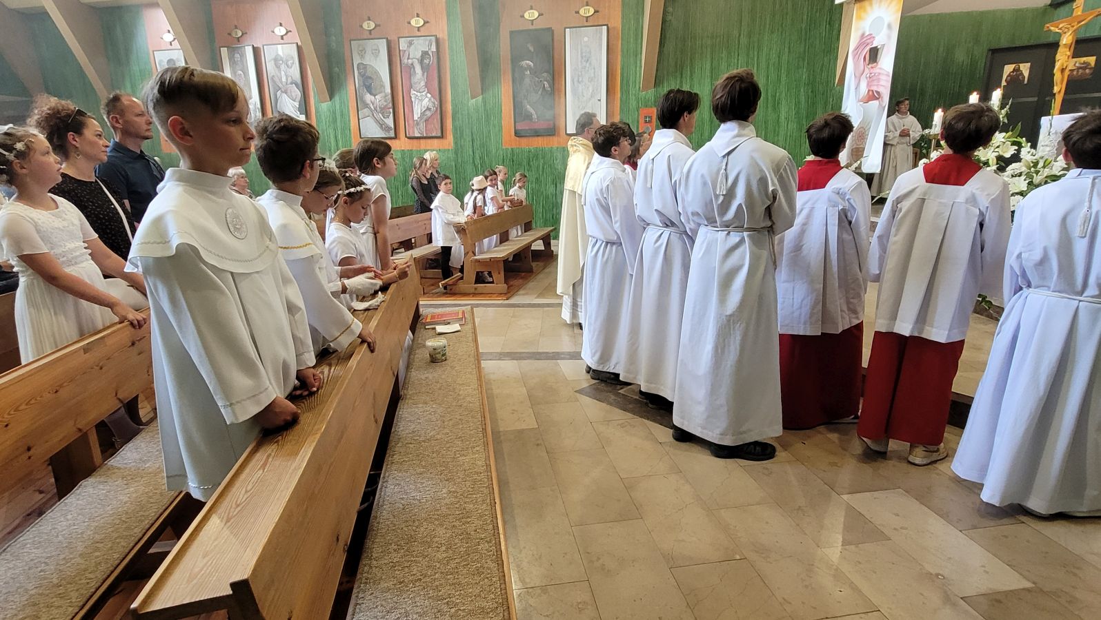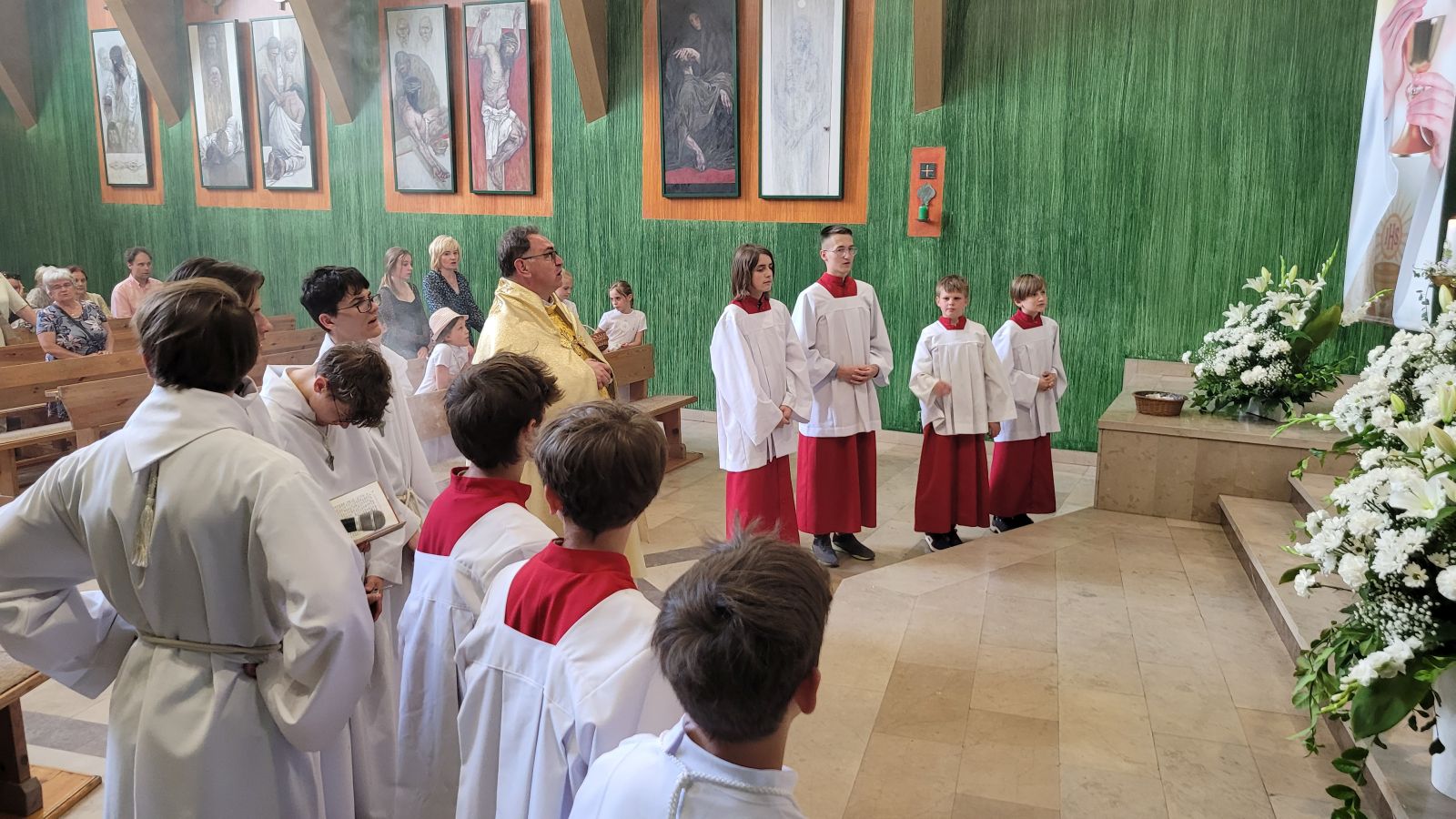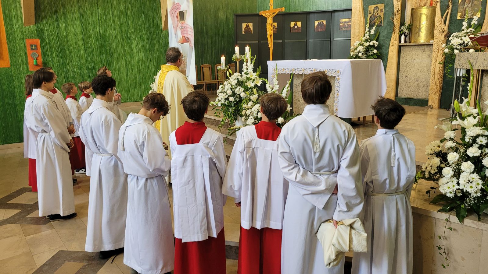 W czwartek 8-06, Kościół obchodził uroczystość Najświętszego Ciała i Krwi Chrystusa. Po mszy świętej o godz. 11.00 wyruszyliśmy z procesją do czterech ołtarzy. Przeszliśmy ulicami: Strumykową, Orzeszkowej, Podleśną, Orzeszkowej i Strumykową, po czym wróciliśmy do naszej świątyni. Udział w procesji wzięły między innymi dzieci pierwszokomunijne i obchodzące rocznicę Pierwszej Komunii Świętej, idąc w strojach komunijnych. Niesione były też tradycyjnie feretrony, baldachim, zaś dziewczynki przy asyście rodziców sypały kwiaty.