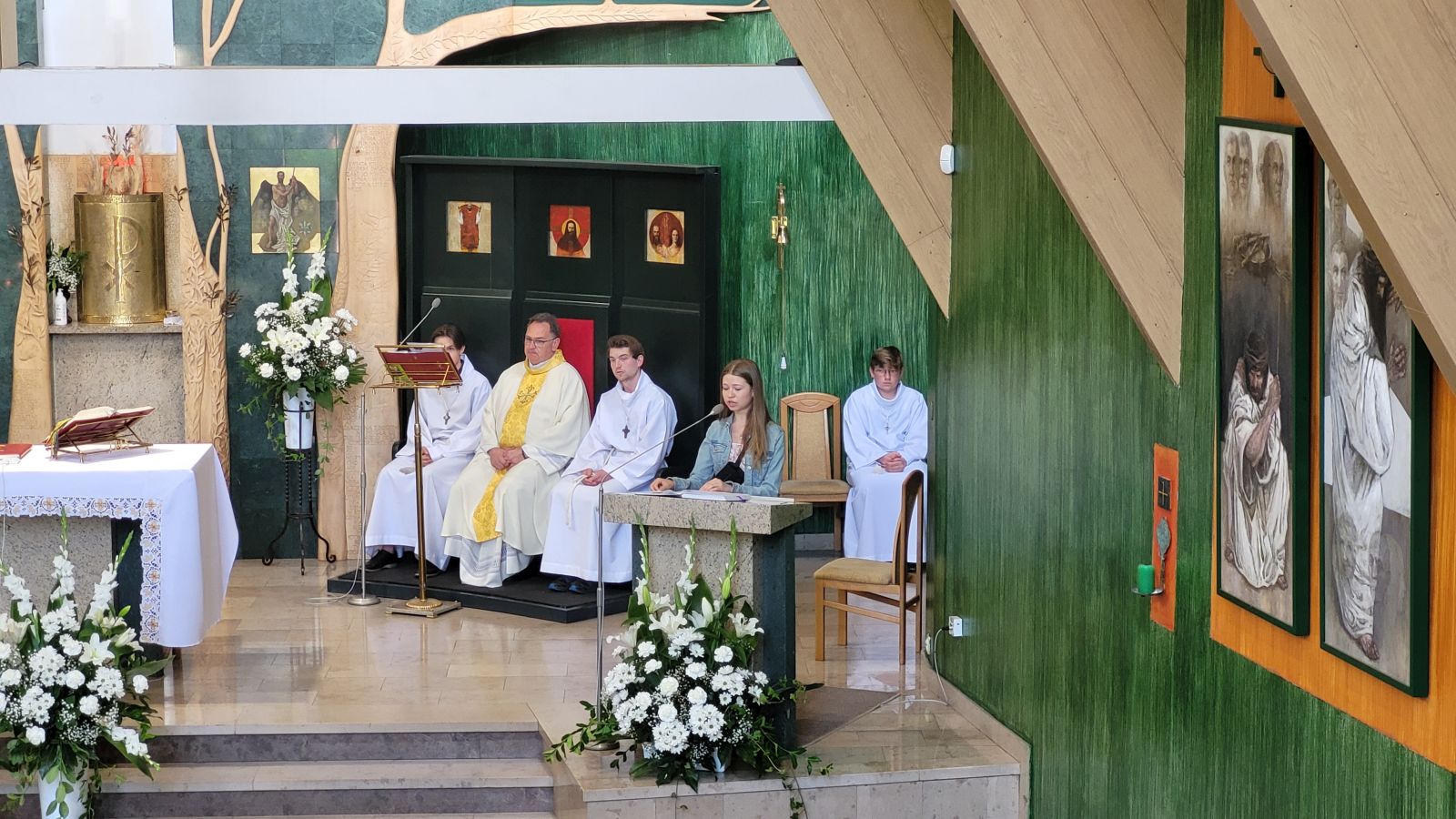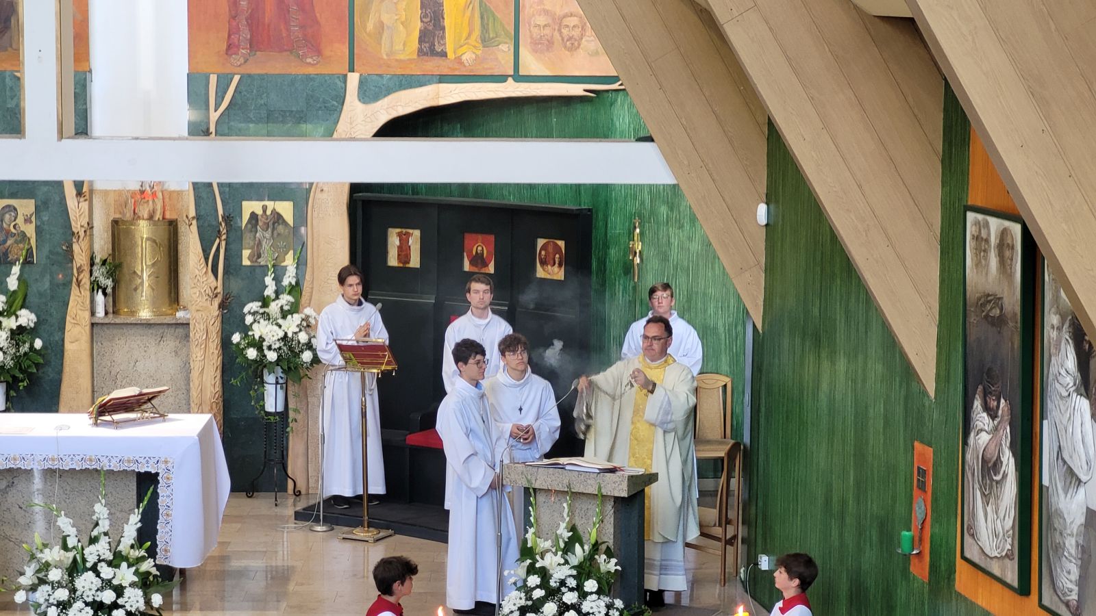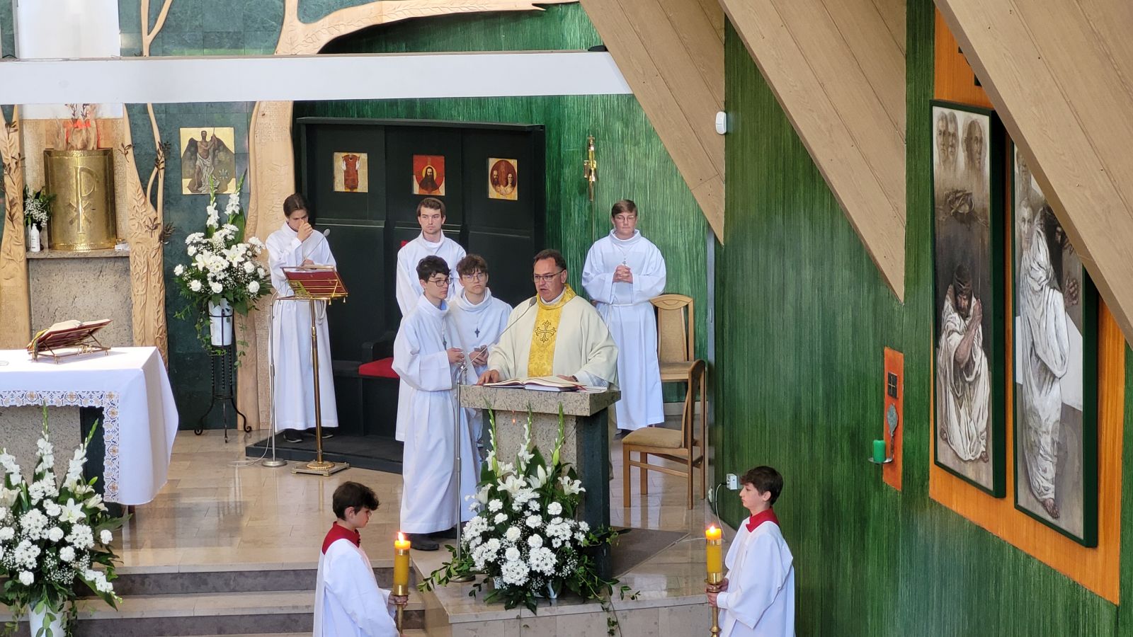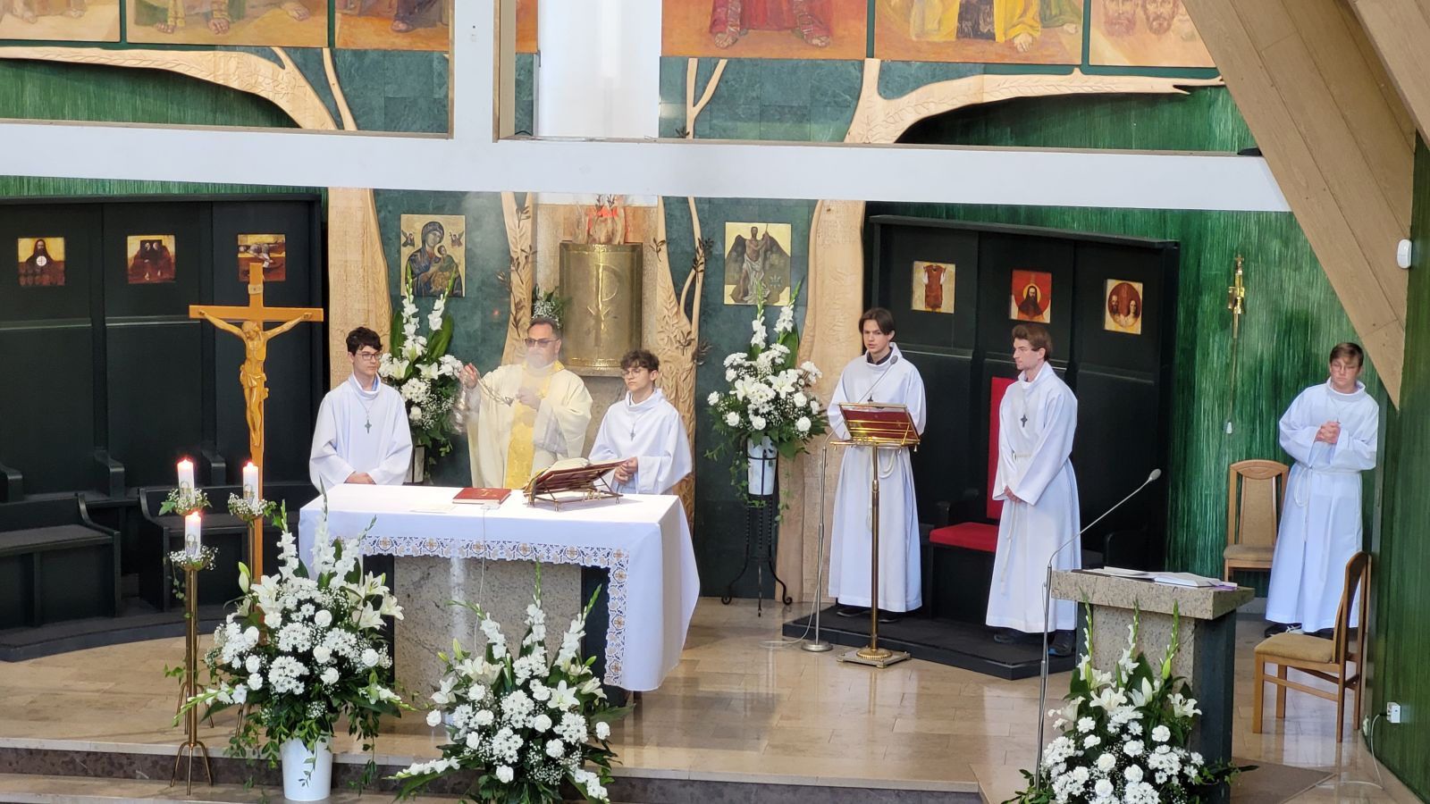 W czwartek 8-06, Kościół obchodził uroczystość Najświętszego Ciała i Krwi Chrystusa. Po mszy świętej o godz. 11.00 wyruszyliśmy z procesją do czterech ołtarzy. Przeszliśmy ulicami: Strumykową, Orzeszkowej, Podleśną, Orzeszkowej i Strumykową, po czym wróciliśmy do naszej świątyni. Udział w procesji wzięły między innymi dzieci pierwszokomunijne i obchodzące rocznicę Pierwszej Komunii Świętej, idąc w strojach komunijnych. Niesione były też tradycyjnie feretrony, baldachim, zaś dziewczynki przy asyście rodziców sypały kwiaty.
