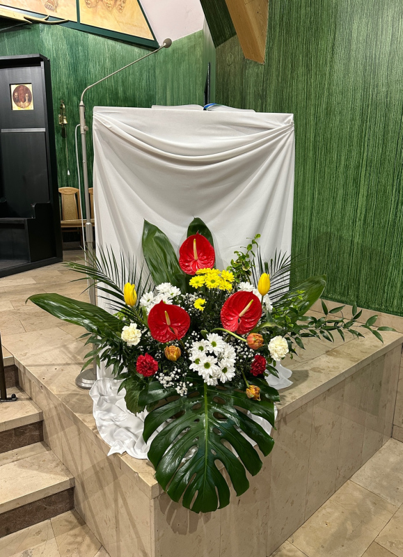 Kościół nasz wyróżnia się pięknymi, dopracowanymi w szczegółach dekoracjami kwiatowymi, dostosowanymi do poszczególnych uroczystości roku liturgicznego. Są one dziełem pań: Laili Łoś, Wiesławy Kałużnej i Krystyny Sos, których praca, zaangażowanie i poświęcony czas wymagają wyróżnienia.