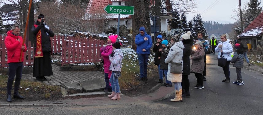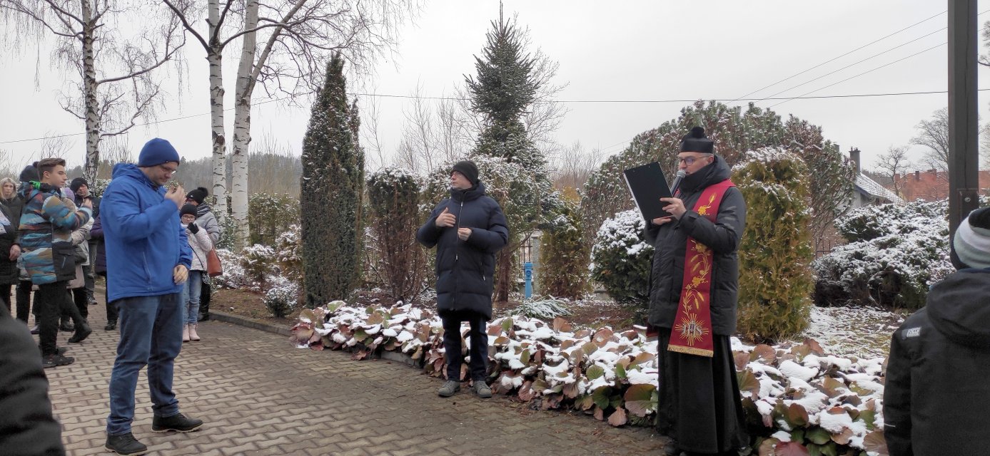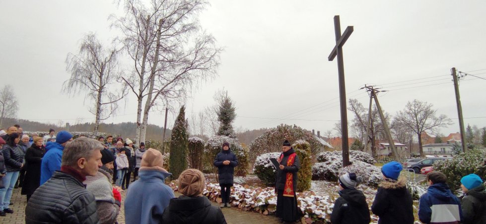 W Pierwszy Piątek Miesiąca, po raz czwarty w historii naszego Osiedla, przeszliśmy ulicami Czarnego, rozważając stacje Drogi Krzyżowej. Przewodniczył jej i rozważania prowadził Ksiądz Proboszcz. Nabożeństwo rozpoczęło się przy krzyżu misyjnym, a zakończyło błogosławieństwem przy krzyżu ustawionym w roku 1946 przez polskich osadników na rozwidleniu ul. Czarnoleskiej.