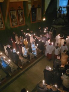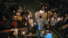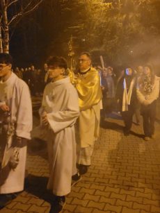 W sobotę 30-03 o godz. 20:00 rozpoczęła się uroczysta liturgia Wielkiej Soboty – od zapalenia świecy paschalnej w ognisku przy grocie Maryi. Po wniesieniu paschału do kościoła pogrążonego w ciemności wierni zapalili swoje świece przy głośnym wołaniu celebransa: „Światło Chrystusa”. Świece te są symbolem zwycięstwa światła nad ciemnością oraz życia nad śmiercią.
