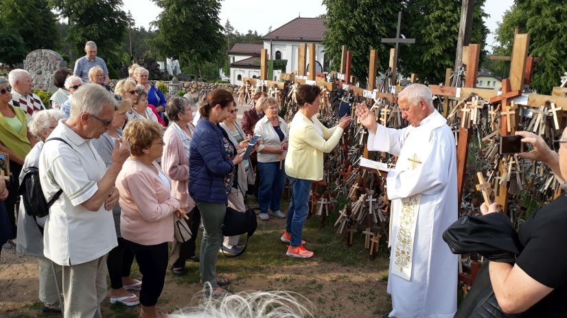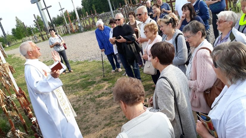 Z Sokółki wróciliśmy w kierunku Białegostoku i dojechaliśmy do miejscowości Wasilków, do Sanktuarium MB Bolesnej w „Świętej Wodzie”. Po zakwaterowaniu poszliśmy do kościółka, gdzie przywitał nas ksiądz proboszcz i opowiedział o cudownym obrazie Matki Bożej Bolesnej i figurze Maryi, spod której wypływa woda, którą ludzie piją i doświadczają wielu uzdrowień. To co jeszcze było bardzo wymowne w tym miejscy to góra krzyży. Sanktuarium stoi na górze a obok niego pielgrzymi ustawiają setki krzyży jako wyraz wiary i wdzięczności.To wyjątkowe miejsce dla katolików, porównywane z prawosławną Grabarką . Święta Woda jest bardziej nowoczesna, a przy tym nieco komercyjna. Mimo to jest to wyjątkowe miejsce pielgrzymkowe, które nas zachwyciło swoim pięknem.