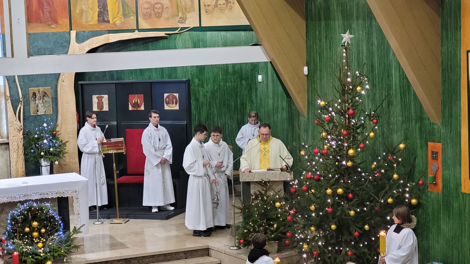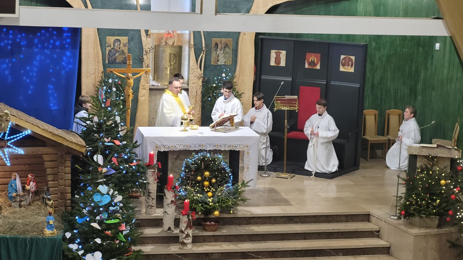 W Wigilię świąt Bożego Narodzenia, 24 grudnia o północy Ks. Proboszcz odprawił uroczystą pasterkę, na którą licznie przybyli wierni z naszej parafii oraz goście. Uroczystą oprawę zapewniła nasza Służba Ołtarza oraz obecność chóru parafialnego JUDA CANTORES pod kierownictwem p. Doroty Królikowskiej. Po Mszy św. wierni mogli złożyć sobie życzenia, łamiąc się tradycyjnym opłatkiem.