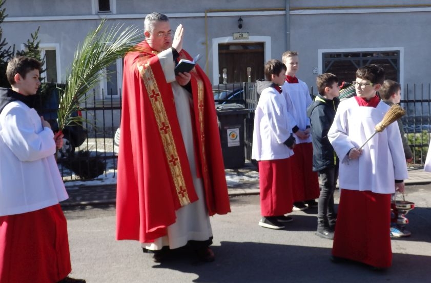 Tak było 2000 lat temu, tak jest dzisiaj. A tę tragiczną prawdę przypomniał opis Męki Pańskiej, czytany w czasie Mszy Świętej. To kontrastowe zestawienie radosnego uwielbienia z nienawiścią wprowadziło nas w liturgię Wielkiego Tygodnia. Opis Męki Pańskiej, czyli druga tego dnia Ewangelia, czytany był z podziałem na role. Lektorami byli ministranci.