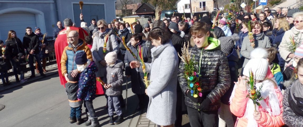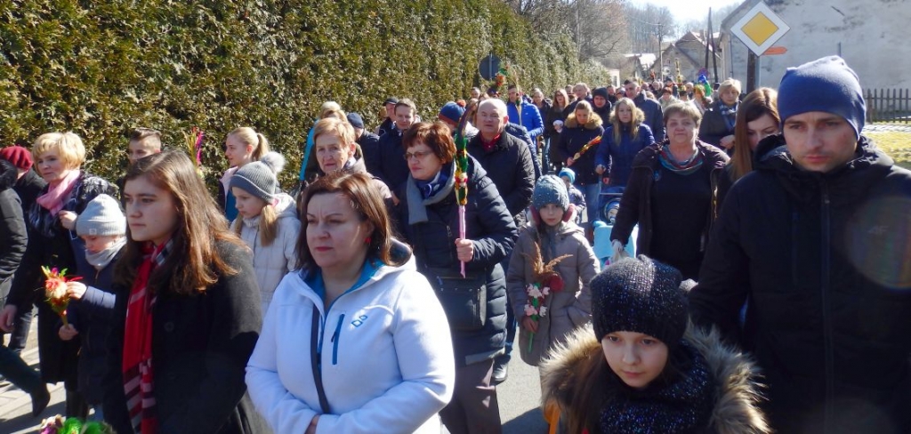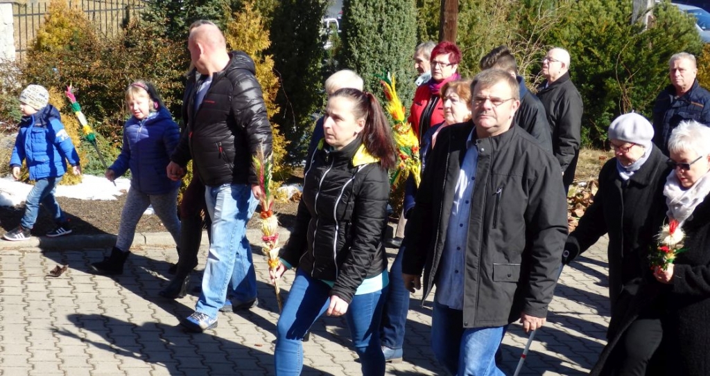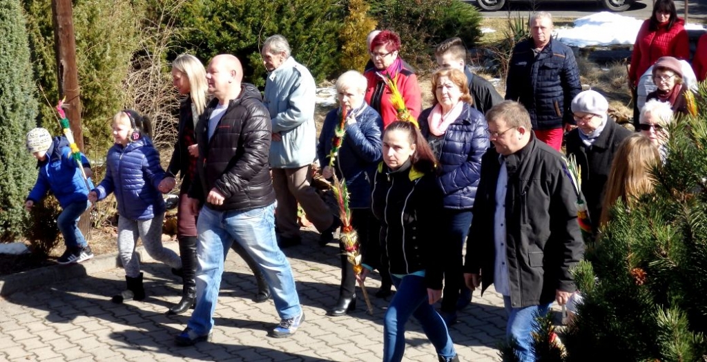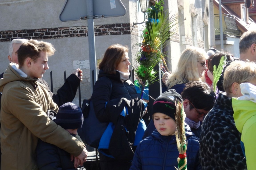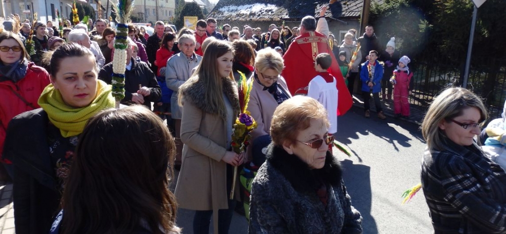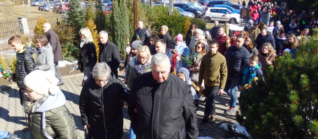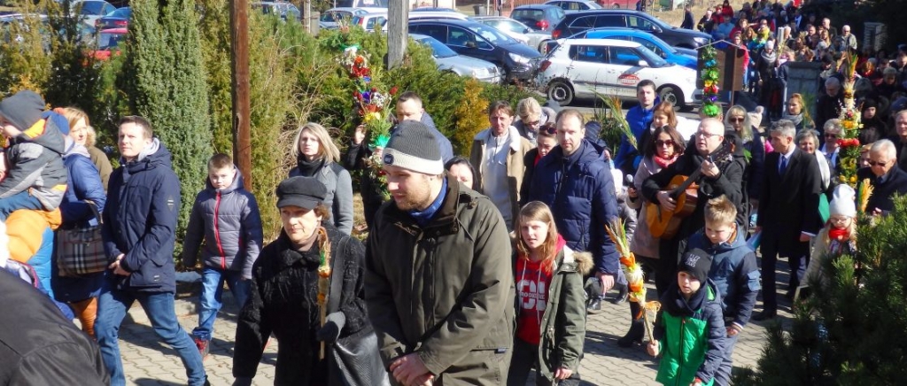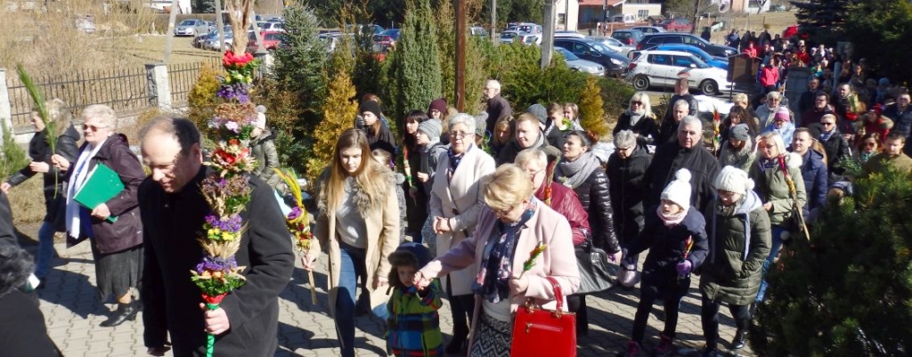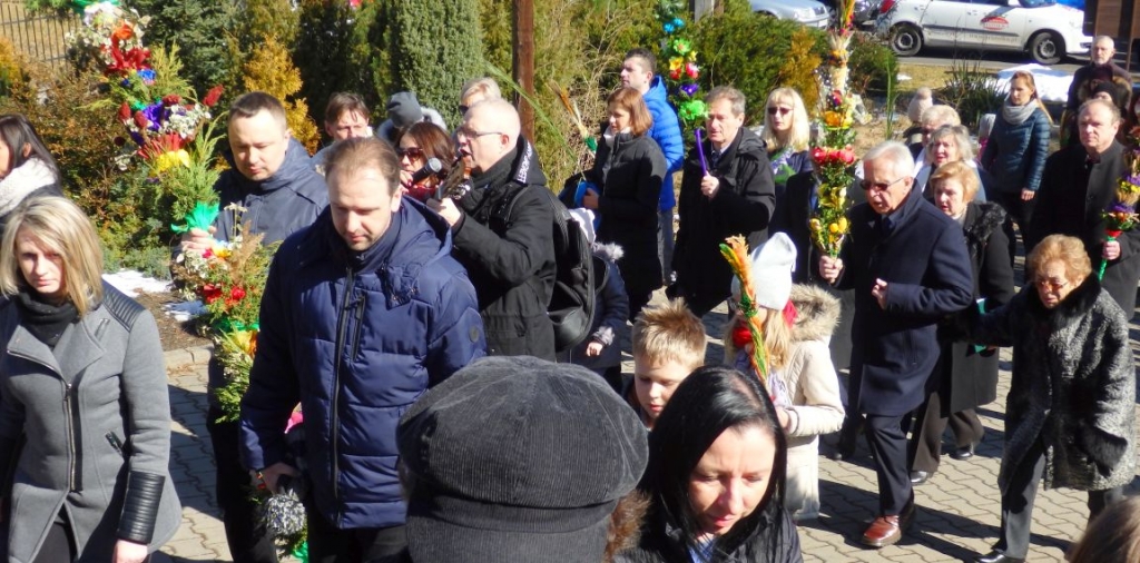 Poświęceniem barwnych palm i procesją rozpoczęła się w Niedzielę Palmową Msza święta sprawowana o godzinie 11.00 w naszej świątyni. Wierni z palmami w dłoniach do kościoła weszli w procesji, aby uczestniczyć w tej jedynej w roku Eucharystii, kiedy aż dwa razy czytana jest Ewangelia.