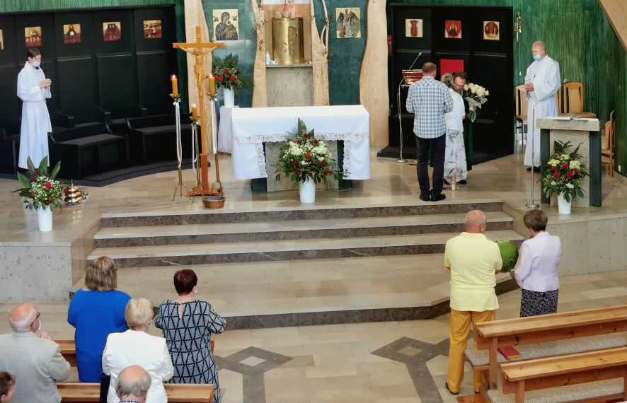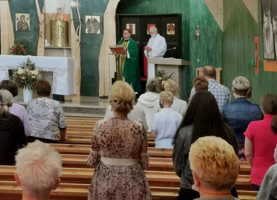 W sobotę 3 lipca przypada wspomnienie św. Tomasza Apostoła. Tego dnia imieniny obchodzi także nasz Proboszcz, Ks. Tomasz Biszko. Z tej okazji podczas wieczornej Mszy św. serdeczne życzenia złożyli solenizantowi parafianie z obecnej jak i poprzedniej parafii – pod wezwaniem Matki Bożej Miłosierdzia w Jeleniej Górze. Po Mszy św. Ks. Tomasz spotkał się z gośćmi w starej kaplicy – plebanii, na przysłowiową kawę i herbatę z ciastkiem – dziełem naszych parafianek. Tam też odśpiewano Księdzu tradycyjne 100 lat oraz „Życzymy, życzymy..”.