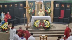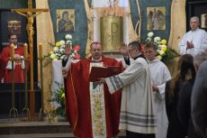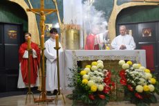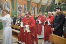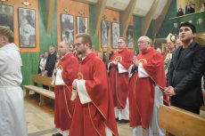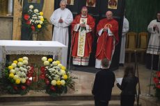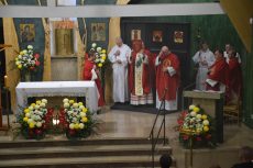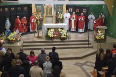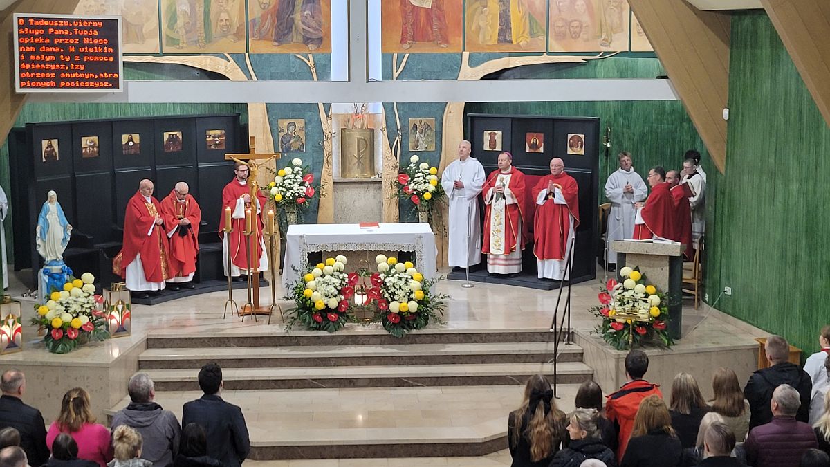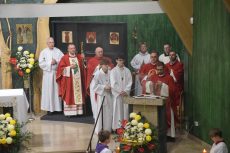 Suma odpustowa celebrowana była o godz. 18.00 i połączona została z udzieleniem sakramentu bierzmowania młodzieży i dorosłym z naszej Wspólnoty i parafii św. Wojciecha. Liturgii przewodniczył ks. biskup Piotr Wawrzynek, a Najświętszą Ofiarę sprawowało jeszcze pięciu kapłanów, wśród których był nasz ksiądz dziekan Bogdan Żygadło. Homilię wygłosił główny celebrans. Zwracając się do kandydatów do bierzmowania ,mówił o wybraniu, powołaniu i wezwaniu po imieniu, a także o tym, że ich zadaniem jest budowanie swojego życia, we współpracy z Duchem Świętym, na fundamencie jakim jest Chrystus Jezus. Odniósł się w niej do życia św. Judy Tadeusza i innych Apostołów, którzy zostali przez Jezusa wybrani i wezwani po imieniu.