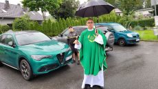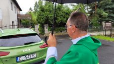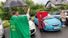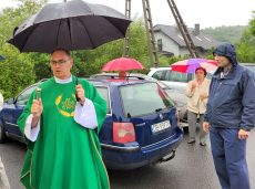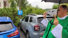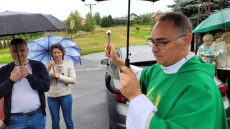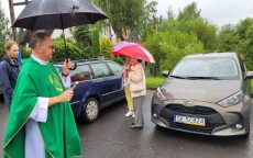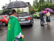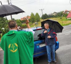 Te słowa modlitwy błogosławieństwa usłyszeli kierowcy podczas sobotniej wieczornej mszy św. Ks. Proboszcz błogosławił kierowców, a następnie udawał się na parking przykościelny, gdzie każdy samochód pokropił święconą wodą.
