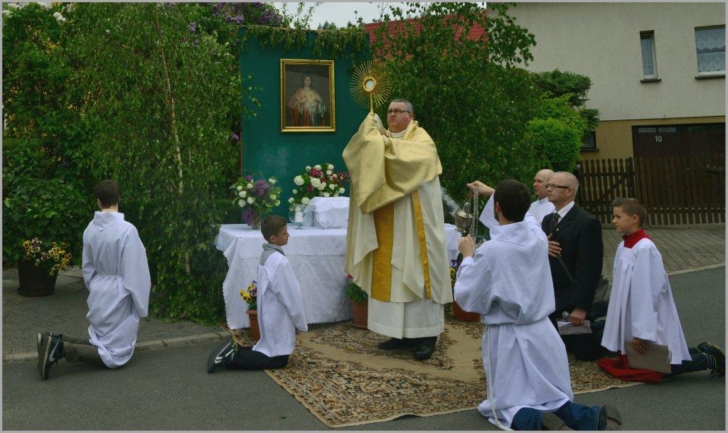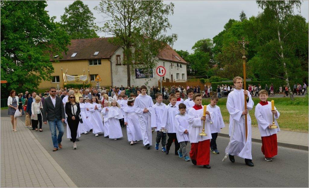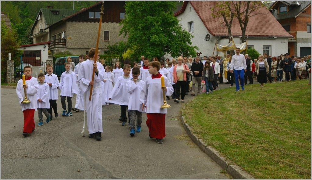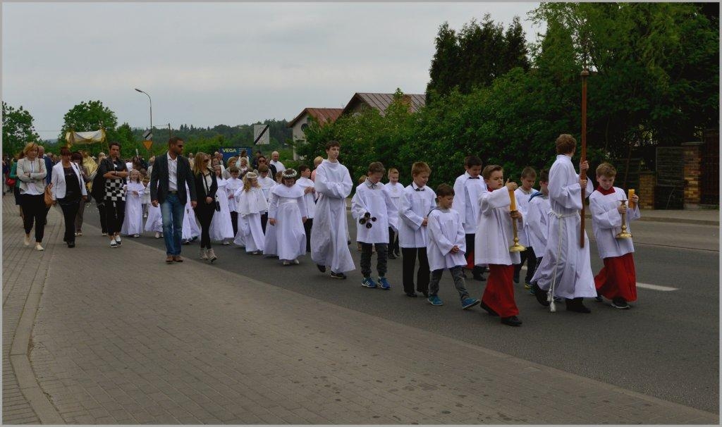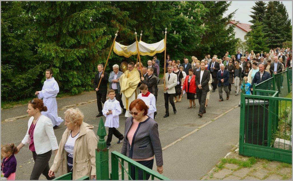 W uroczystość zwaną popularnie Bożym Ciałem, przy donośnym biciu dzwonów, wychodzą z kościołów na ulice miast i wiosek uroczyste procesje z Najświętszym Sakramentem. To publiczne wyznanie wiary katolickiej w obecność Jezusa Chrystusa miało miejsce także w naszej parafii.