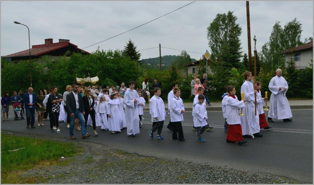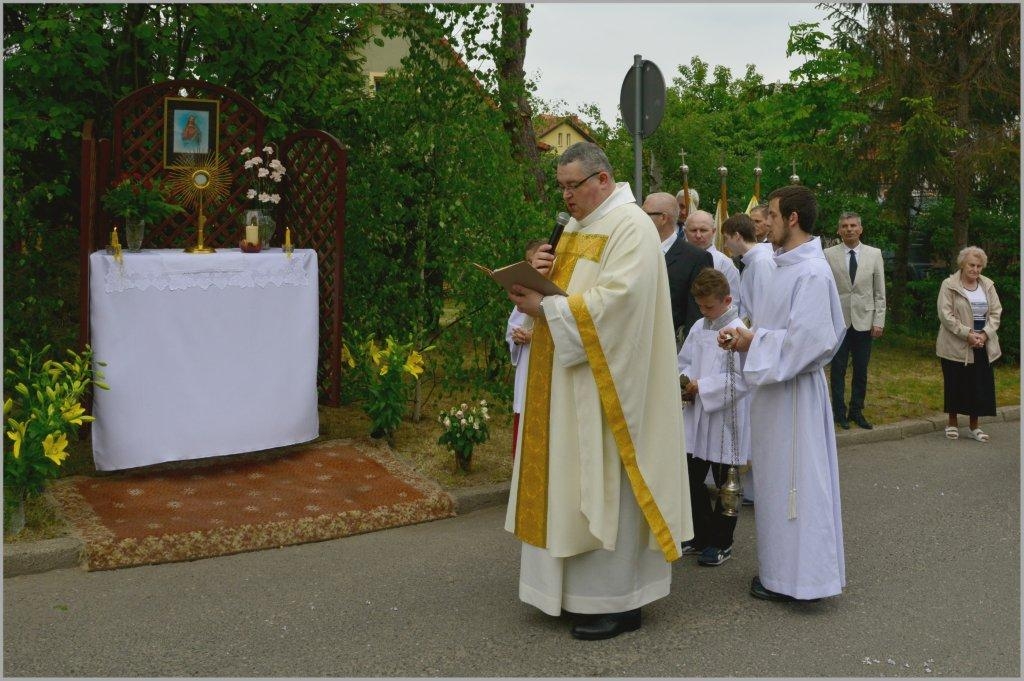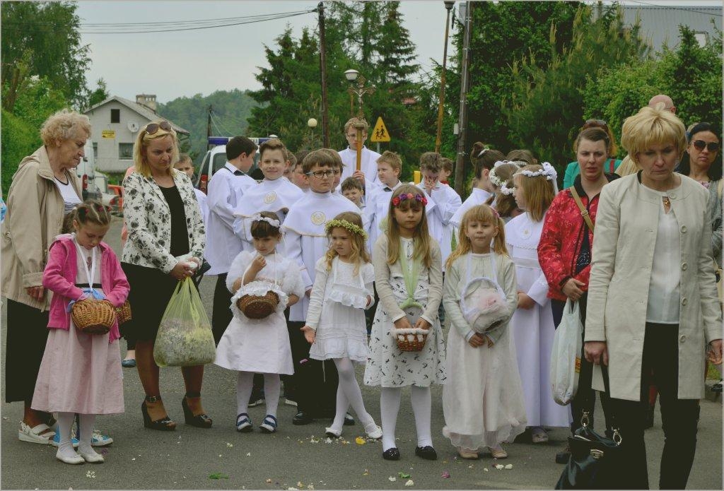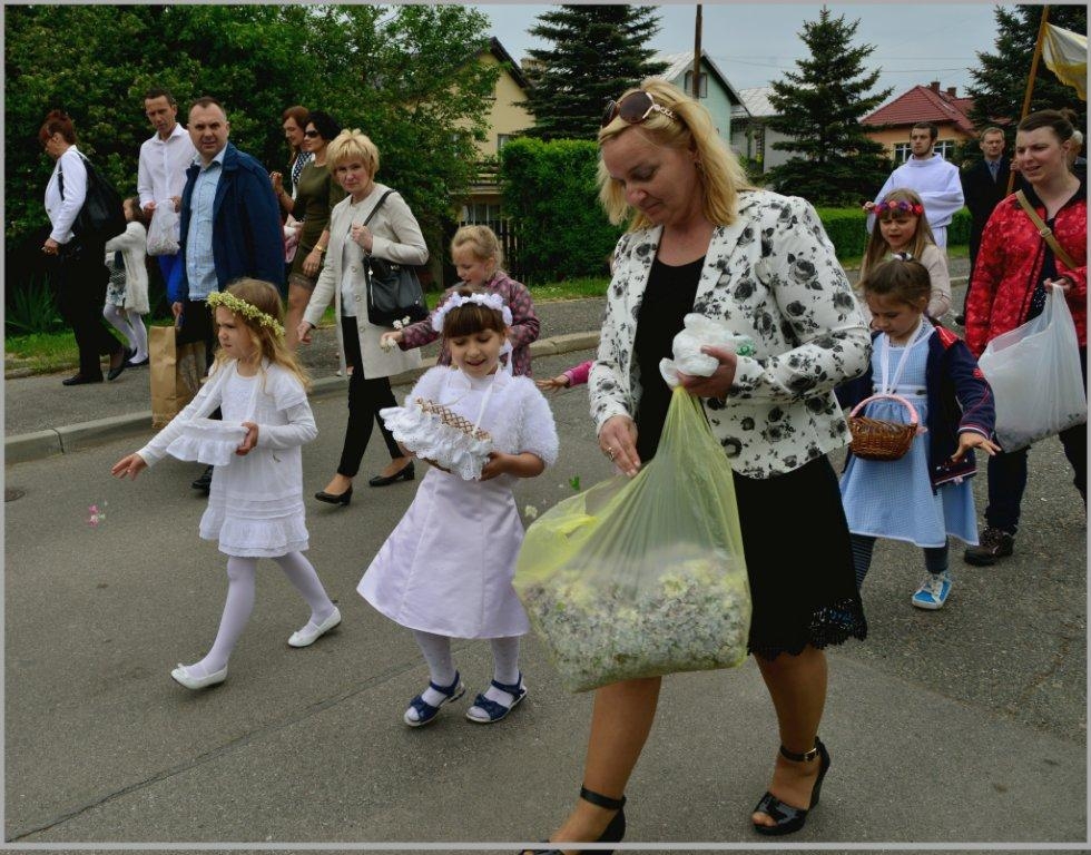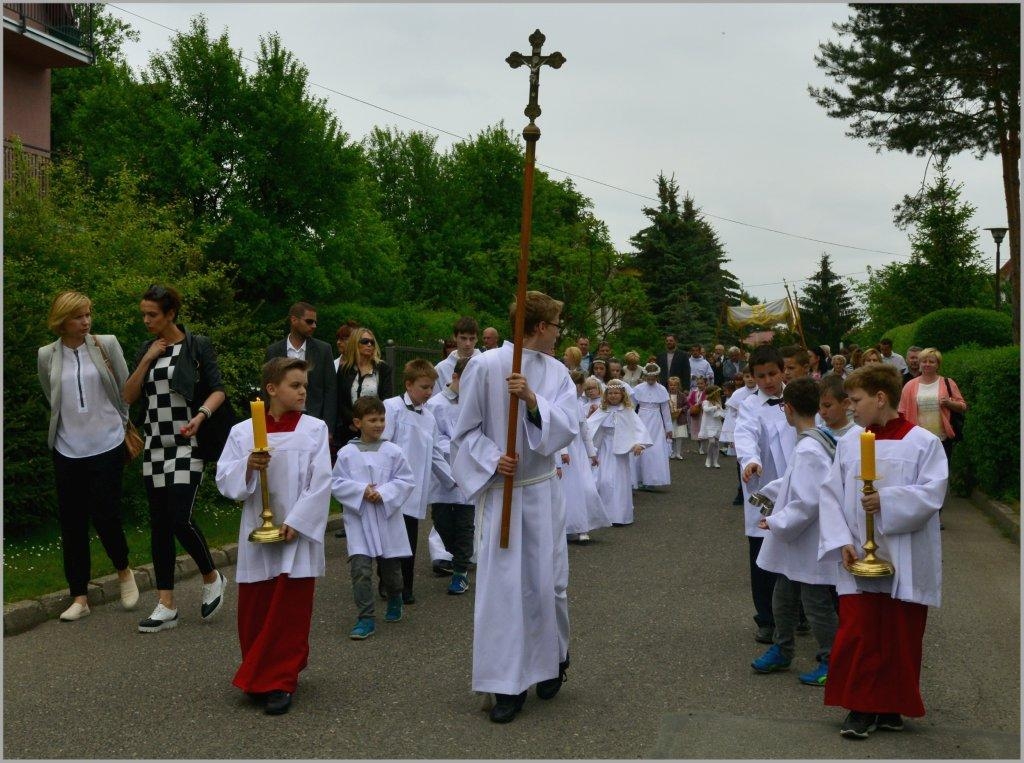 Procesję poprzedziła uroczysta Msza św. podczas której dzieci z klas trzecich przeżywały rocznicę I Komunii św. Eucharystii przewodniczył ks. Proboszcz, który w homilii podkreślił, że dniu dzisiejszym wyrażamy wielką wdzięczność Chrystusowi za wielki dar jakim jest Eucharystia, Najświętszy Sakrament. Dziękujemy Panu Jezusowi za to, że pozostał z nami w tym sakramencie miłości. Został z nami aż do skończenia świata, ukryty pod postaciami chleba i wina.