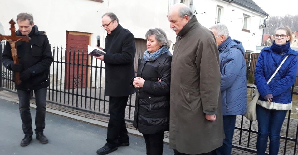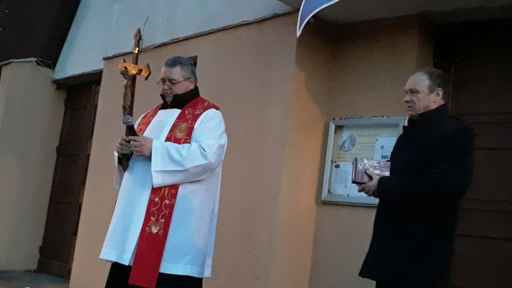 Rozpoczęła się przy krzyżu ustawionym w roku 1946 przez polskich osadników na rozwidleniu ul. Czarnoleskiej, a zakończyła błogosławieństwem przy naszej świątyni. Idąc uliczkami rozważaliśmy kolejne stacje Męki Chrystusa, które czytał pan Ryszard Sos.